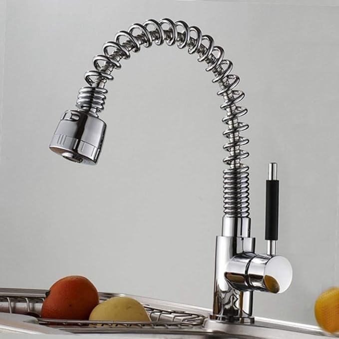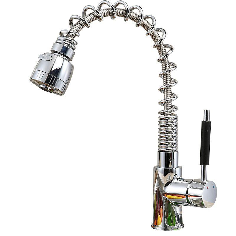 Baterie de bucătărie F18 cu arc și duș extractibil – crom lucios