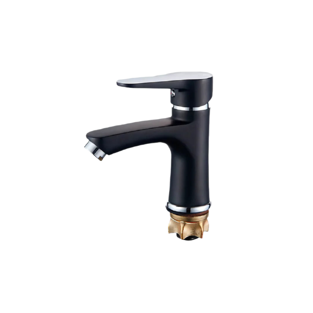 Baterie monocomandă pentru lavoar, cu montaj pe blat sau pe lavoar, realizată din materiale rezistente la coroziune și finisată în negru mat. Echipată cu cartuș ceramic de 35 mm pentru un control precis al temperaturii și debitului de apă. Include aerator pentru reducerea stropirii și un consum optim de apă. Compatibilă cu instalații standard.