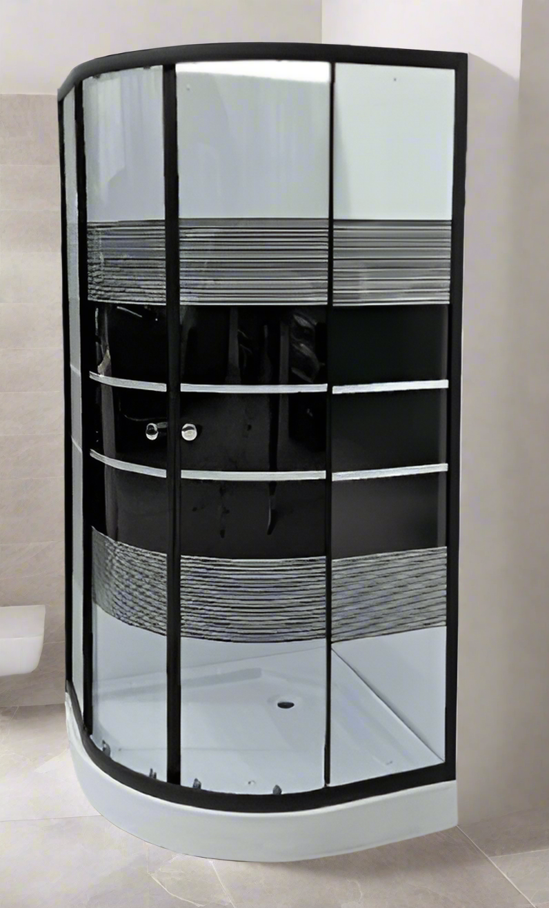 Cabină de duș semirotundă SBL-90 Corner, 90x90 cm, sticlă securizată 5 mm, profil negru mat