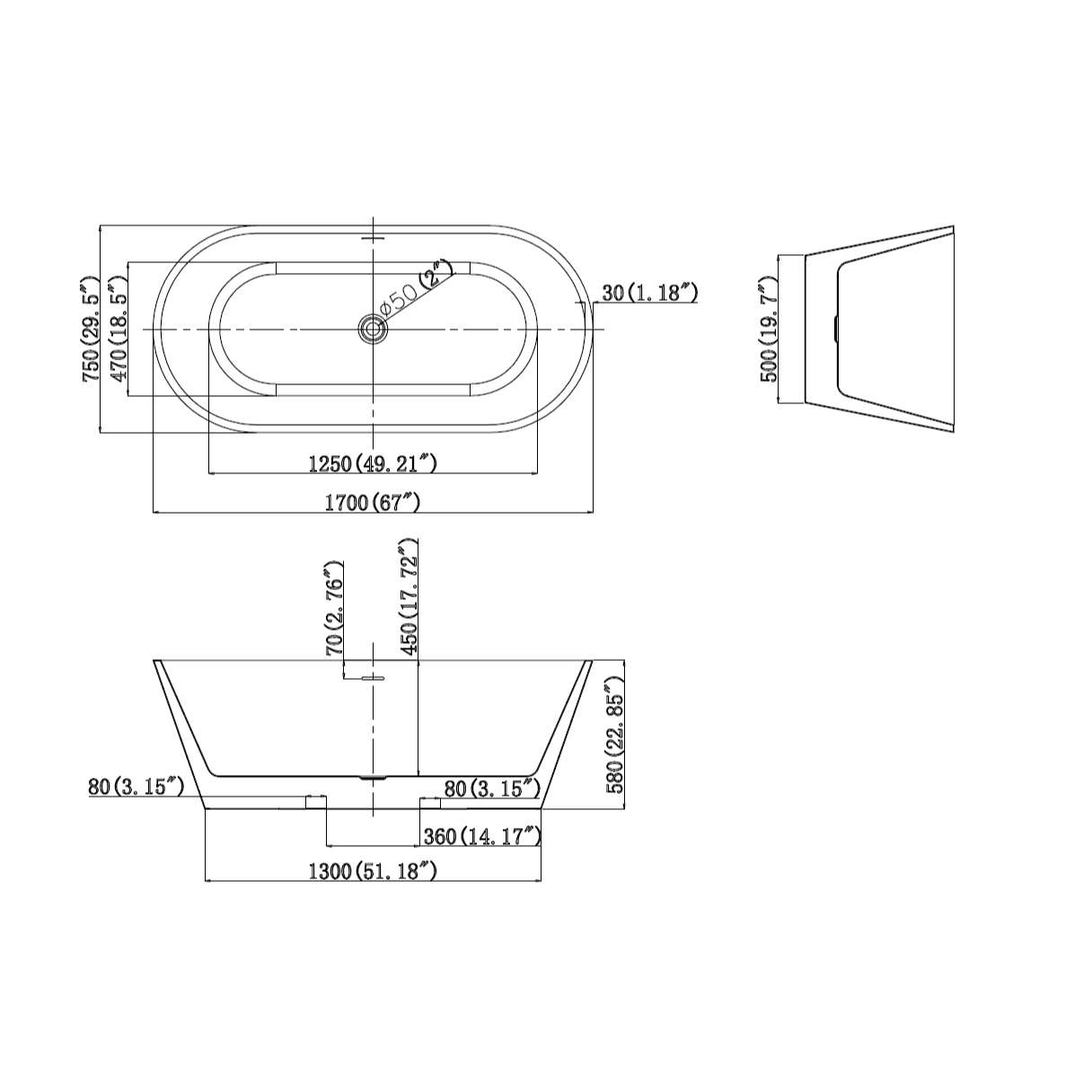 Cada freestanding Malaga WB-822, 1700 x 750 mm, formă ovală, finisaj alb lucios