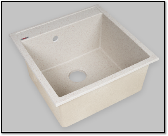 Chiuvetă pătrată de bucătărie realizată din compozit cu finisaj crem mat, cu dimensiuni de 50 x 50 cm. Modelul este fabricat dintr-un amestec de granit și rășini sintetice, având o structură durabilă și rezistentă la șocuri, pete și temperaturi ridicate. Este prevăzută cu o cuvă adâncă, gaură preformată pentru baterie și sistem de preaplin.
