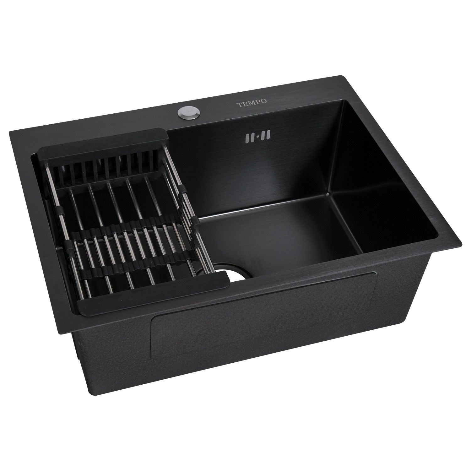 Chiuvetă bucătărie inox negru mat handmade, 60x45 cm, montaj pe blat sau sub blat, cu accesorii incluse