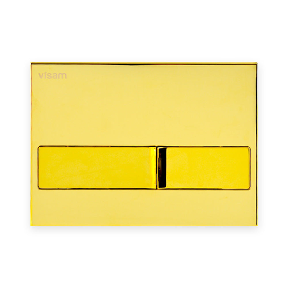 Clapeta de acționare VISAM, cu finisaj auriu, este destinată utilizării cu rezervoarele îngropate standard VISAM. Dispune de mecanism dual flush și acționare mecanică, oferind funcționare fiabilă și acces ușor pentru întreținere.