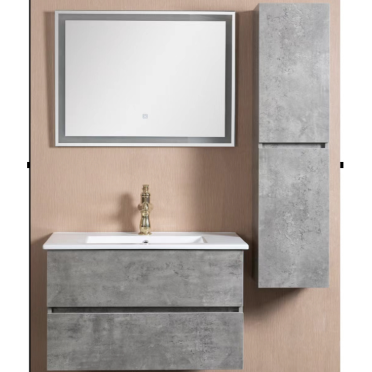 Set Mobilier Baie Suspendat STONE (WB-BC024) – 80 cm, cu Lavoar Ceramic, Oglindă LED și Coloană de Depozitare