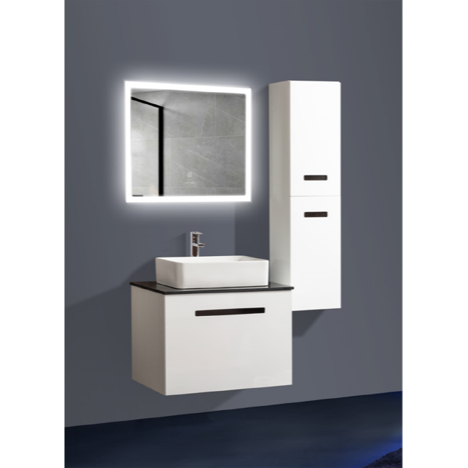 Mobilier Troia (WB-BC202) 70 cm oglindă cu LED, lavoar ceramic, blat compozit, soldat inclus, MDF total