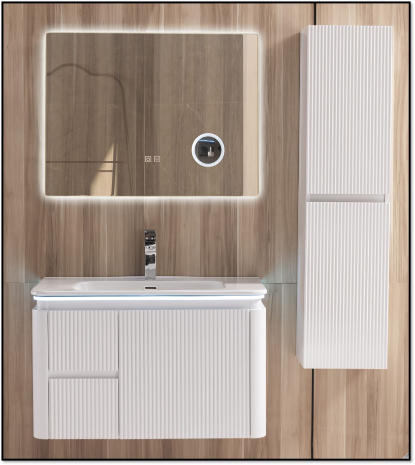 Setul CAPPADOCIA 80 cm este un mobilier de baie suspendat, cu design riflat vertical și finisaj alb mat. Fabricat integral din PVC, este impermeabil și rezistent la deformare, ideal pentru utilizare în spații cu umiditate ridicată.
