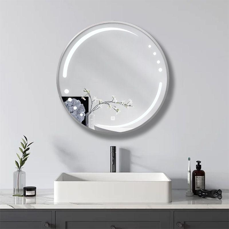 Oglindă LED 6911, Ø70 cm, rotundă, cu ramă aluminiu argintiu și senzor tactil