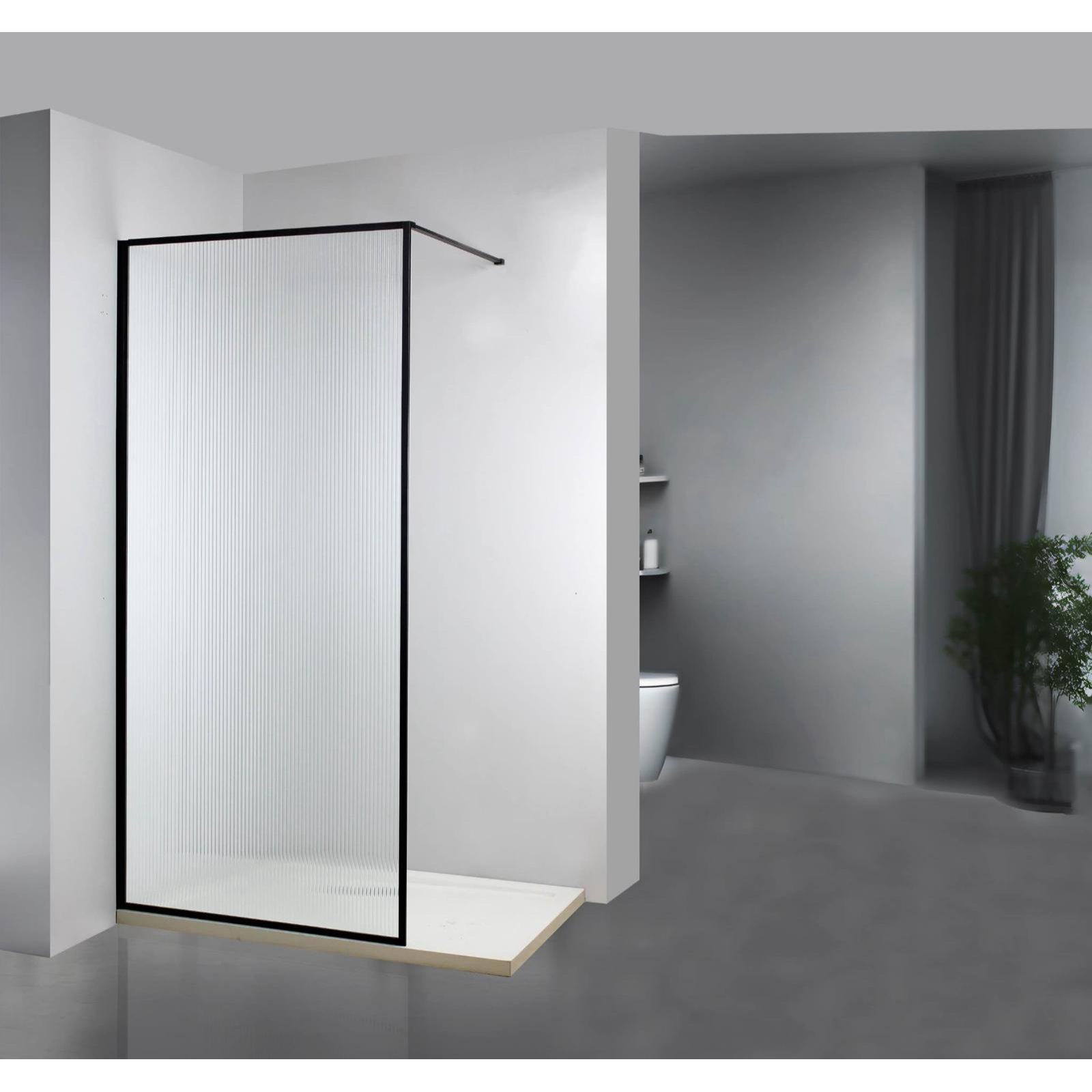 Paravanul de duș Walk-In 90x190 cm, cu sticlă securizată de 8 mm și decor vertical, este prevăzut cu o ramă metalică neagră mată și oferă o delimitare eficientă a spațiului de duș. Construit pentru montaj fix, asigură durabilitate și protecție împotriva stropilor, fără componente mobile.