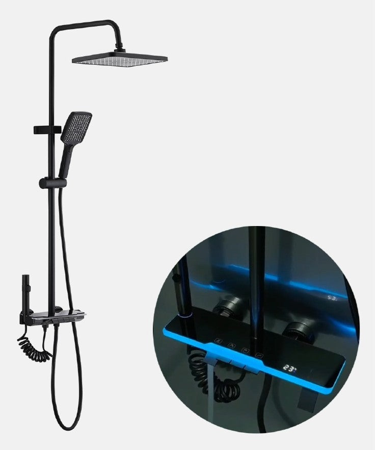 Sistem de duș cu termostat digital și panou de comandă – finisaj negru mat